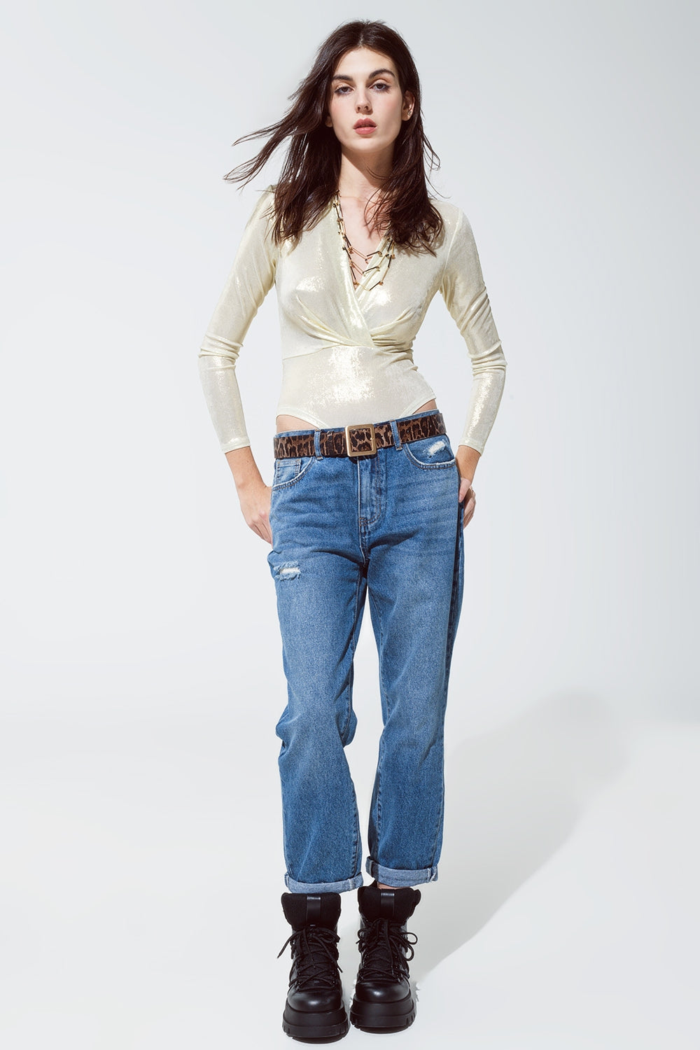 Design: Ce body élégant séduit par son col en V profond et ses manches longues, le tout sublimé par une coupe bodycon qui épouse les courbes à la perfection. Sa finition métallisée capte la lumière avec raffinement, tandis que les détails drapés ajoutent une touche de sophistication et de mouvement.