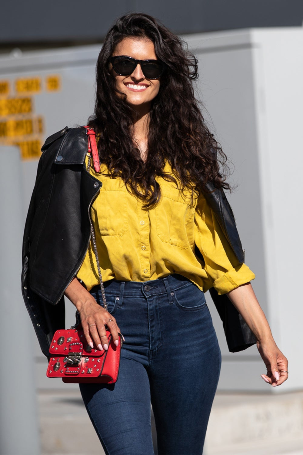 Le sac Hollywood en cuir rouge SUSU est un modèle structuré avec des clous argentés. Il se ferme avec un verrou métallique argenté et dispose d’une poignée en cuir. L’intérieur comprend une poche zippée et une poche plaquée pour organiser vos essentiels. Le chaînon argenté amovible et ajustable permet de le porter à la main, à l’épaule ou en bandoulière. Intérieur beige.
