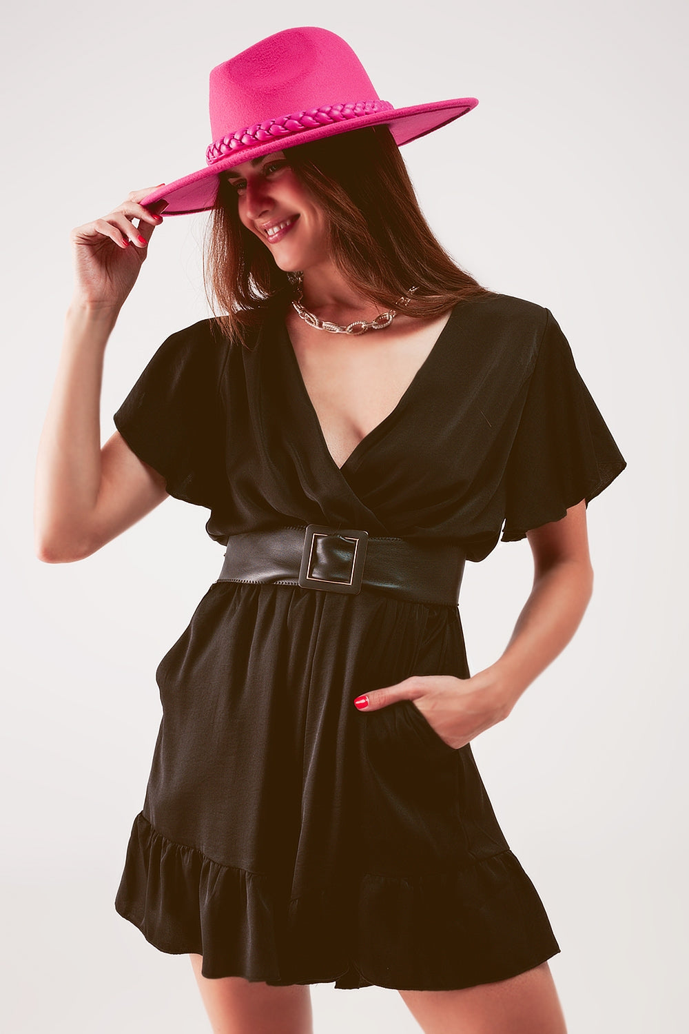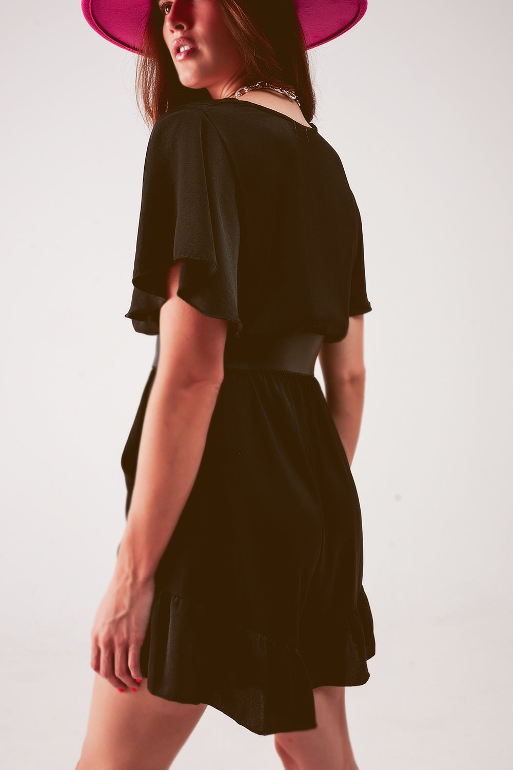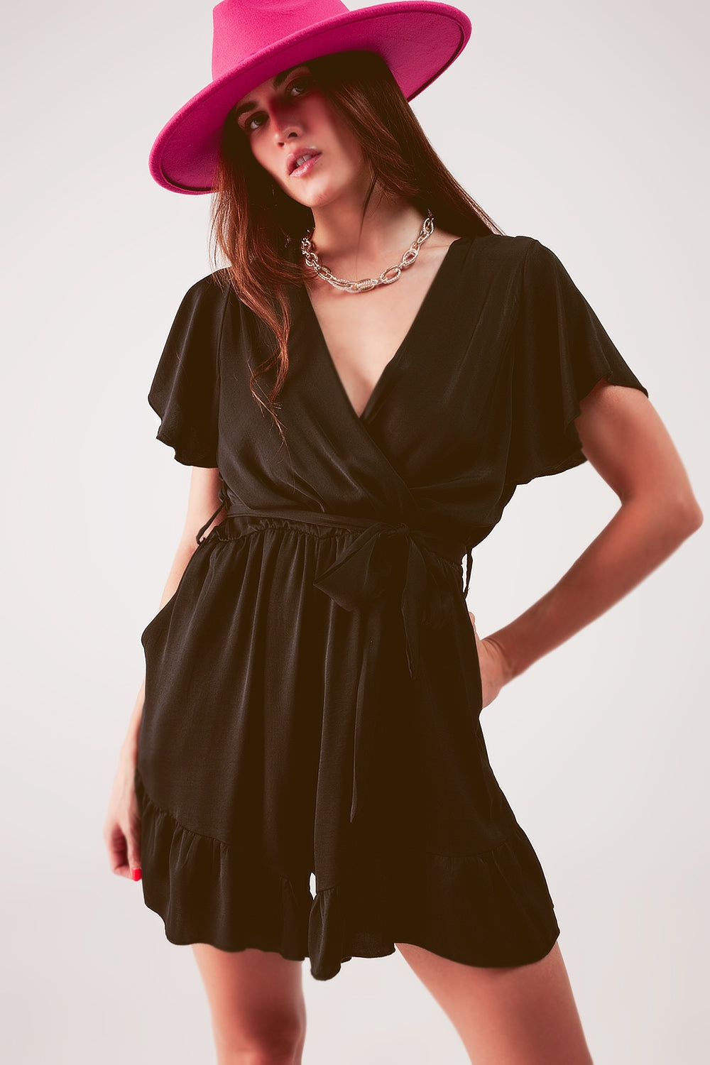 Design: Combinaison croisée, encolure en V, manches ange, ourlet volanté et poches fonctionnelles. Taille élastique pour un ajustement parfait et un confort optimal. Ceinture à nouer incluse, du même tissu (ne pas confondre avec la ceinture décorative).
